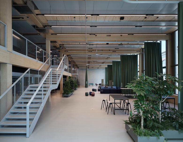 Auf einer Fläche von rund 11’000 m2 entstanden rund 500 attraktive und moderne Arbeitsplätze. Es stehen den SWICA Mitarbeitenden neben den ergonomischen Arbeitsplätzen auch Fokusräume, unter-schiedlichste Sitzungszimmer, Cafeterias und gemütliche Terrassen zur Verfügung. In den zwei überhohen Hallen entstanden Zonen für Projekt- und Kreativarbeit, welche durch raumhohe Vorhänge unter-teilbar sind. Im Erdgeschoss befindet sich das neue Schulungs- und Konferenzzentrum der SWICA. Die Kundinnen und Kunden werden im neu inszenierten historischen Portikus empfangen und beraten.