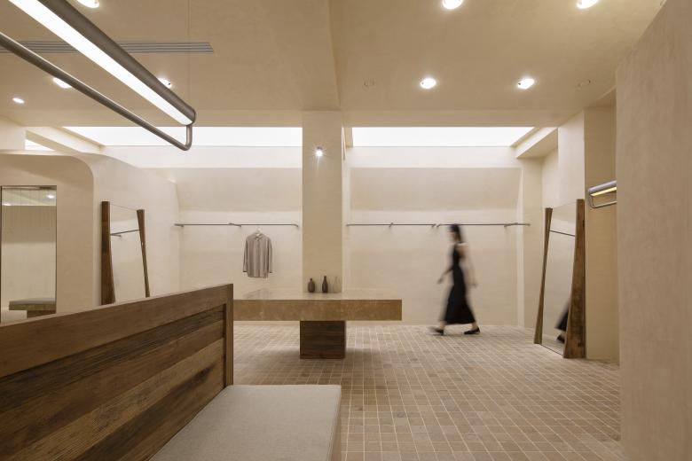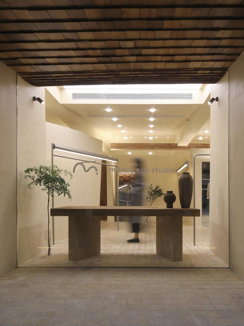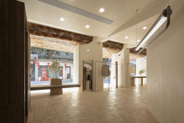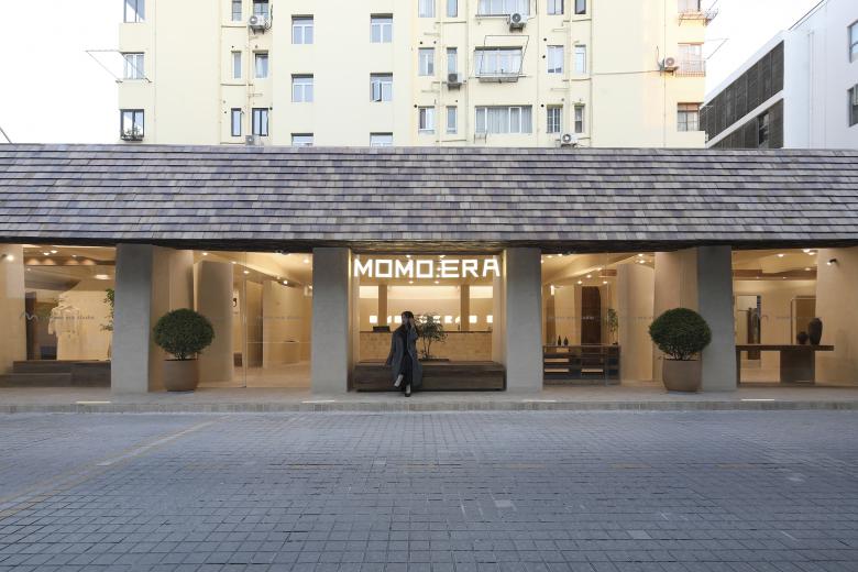 在繁华都市里MOMO ERA致力于为都市女性提供不同产品线的服饰。品牌在选址时,避开了直面熙攘的街道,而是拐进了一个创意园区内部,与街道喧嚣保持恰到好处的距离,以一种内敛专属的调性存在于园区中,这是一次对零售店的挑战,却也给设计带来了新的局面。业主委托多么工作室为其设计改造,并期望营造出一种与人亲近,自然纯粹且弥漫着旧时光韵味的购物环境,让每一位顾客都能感受到家一般的松弛与自在。最终,我们寻回到了一个亘古常新的议题“身体-空间”