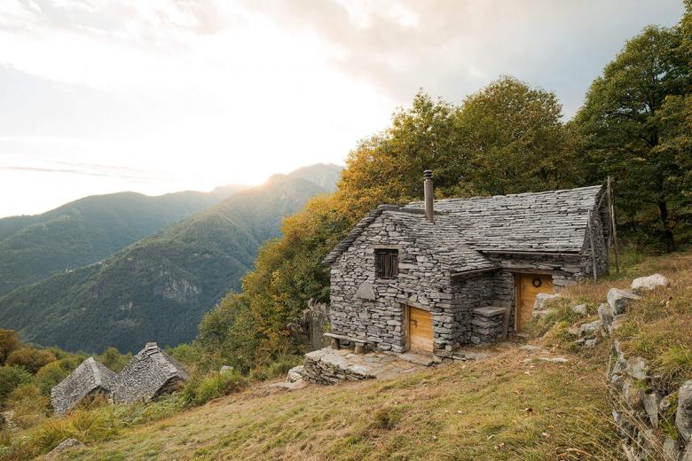 Das kleine Haus am Pizzo Vogorno ist ein einfacher Zweckbau aus Natursteinen, Holz und ein wenig Eisen. Der erste Bau könnte im 18. Jh. erstellt worden sein, ein typischer zweigeschossiger Bau mit Firstrichtung gegen das Tal. Unten für die Tiere oben für das Heu, in welchem auch gleich geschlafen wurde. In einer zweite Phase wurde ein kleines Feuerhaus, ein sogenanntes «Cra» mit darunterliegendem kühlem Keller angebaut.