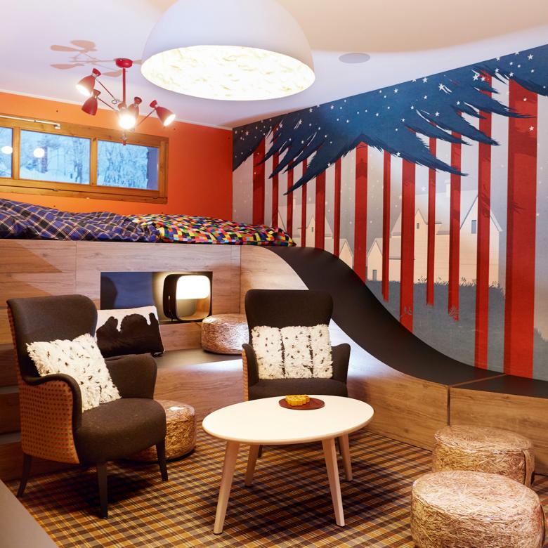 Zu den Besonderheiten zählt nicht nur die Moontain App, mit der sich die Gäste mühelos vernetzen können. Prägend ist vor allem die von den Planern von Structa umgesetzte Raumgestaltung. Deren erfrischend-kreative Atmosphäre beruht massgeblich auf der Verwendung von SWISS KRONO OSB-Platten.