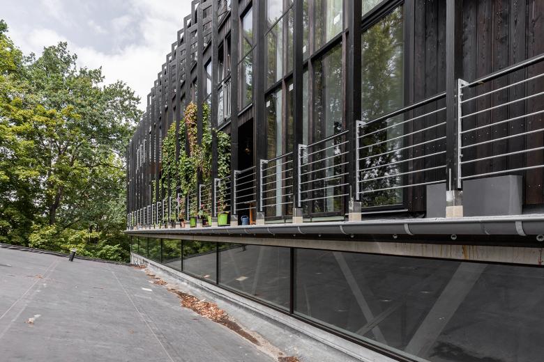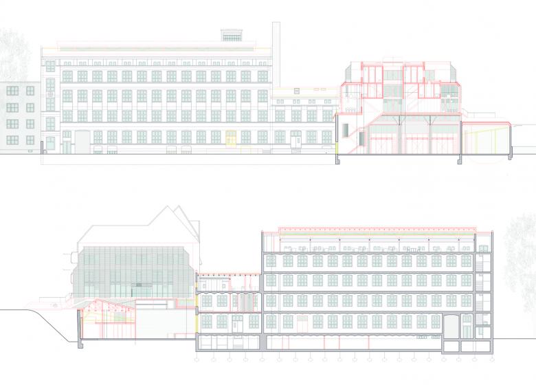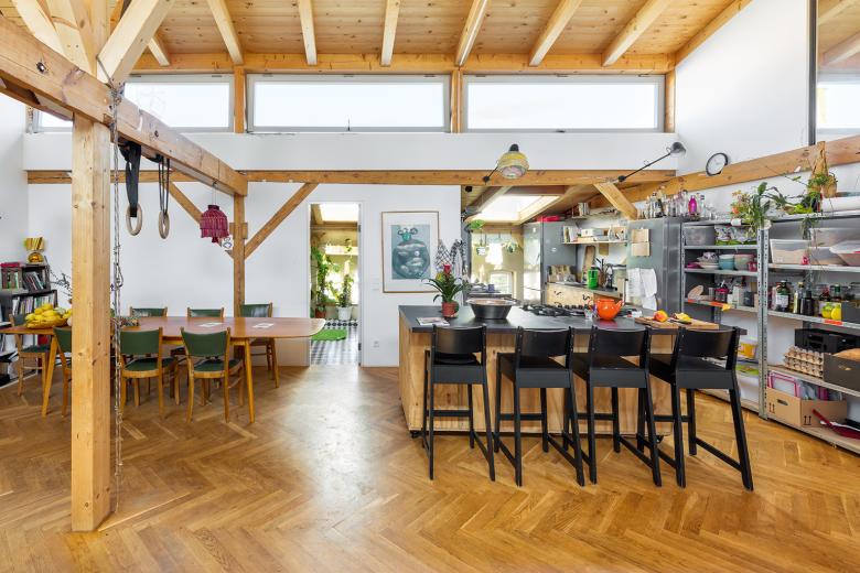 The listed former bathtub factory on Moosdorfstrasse in Berlin was converted and extended with prefabricated timber construction. In close cooperation and constant negotiation with the client, a community of practice dedicated to sharing and shaping collective ventures, large communal flats were created for up to nine adults and eleven children.