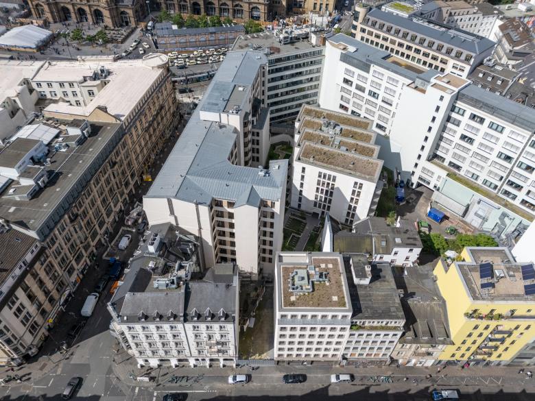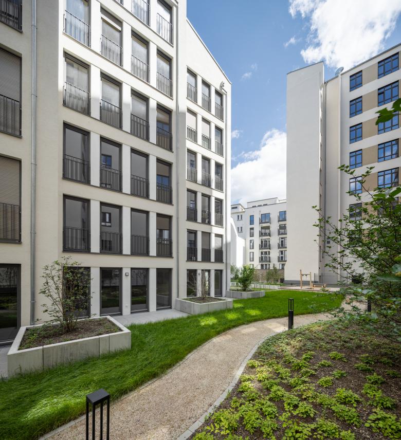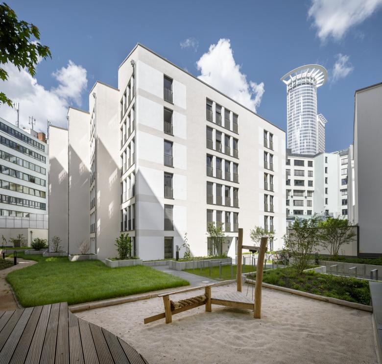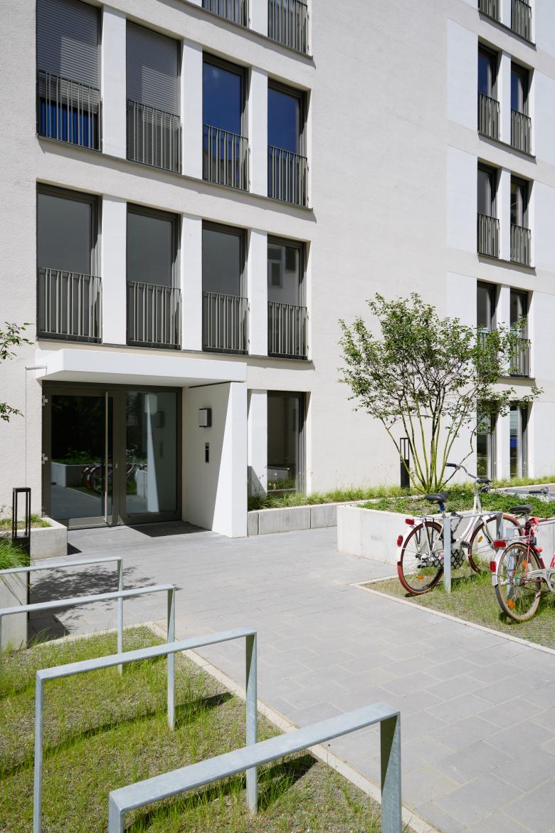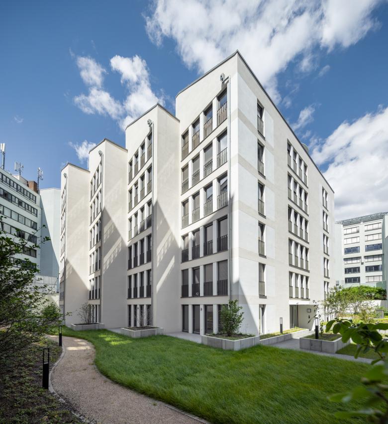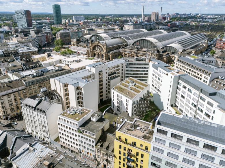 Eine Wohnanlage als innerstädtische Nachverdichtung in unmittelbarer Nähe zum Frankfurter Hauptbahnhof. Das Ensemble aus zwei Gebäuden wurde im Innenhof eines urbanen Blocks anstelle eines Parkhauses sowie in einer Baulücke in der Moselstraße geplant. Im Innenhof entstand ein gestaffelter, sechsgeschossiger Neubau mit insgesamt 47 Eigentumswohnungen. Große Fensterformate, teilweise mit vorgelagerten Balkonen, bringen Licht in die Wohnungen. Der Innenhof wurde mit Grünflächen und einem Spielbereich neu gestaltet und stärkt so die gesamte Außenraumqualität der Anlage sowie die der umgebenden Gebäude.In der Moselstraße wurde die Baulücke mit einer siebengeschossigen Wohnbebauung mit insgesamt 18 geförderten Wohneinheiten geschlossen. Zur Moselstraße entwickelten wir eine klassisch städtische Fassade, die sich an der angrenzenden Bebauung orientiert. Zum ruhigen Innenhof haben die Wohnungen Balkone und so einen privaten Außenraum.