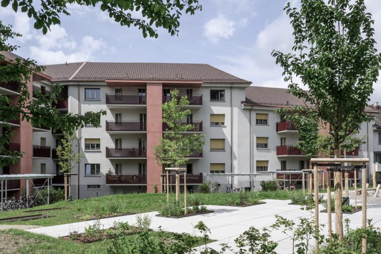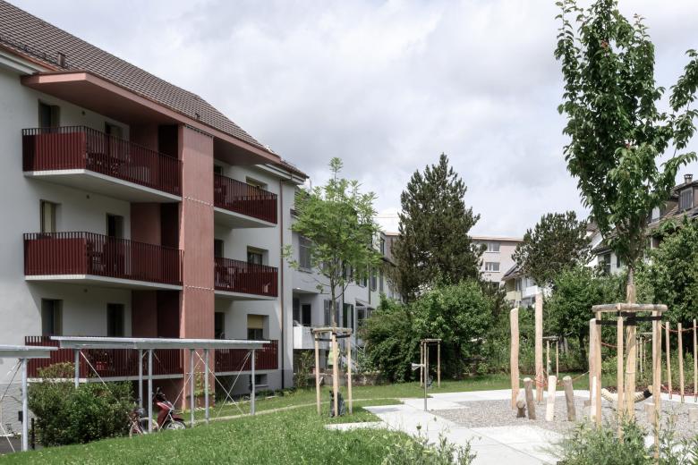 Die Umgebung der Überbauung steht exemplarisch für eine Siedlungsform mit gemeinschaftlicher Prägung. Historisch diente die Umgebung primär der gärtnerischen Nutzung - mit Gemüsegärten, Blumenbeeten und Obstbäumen - die eine enge Verbindung zwischen den Bewohner:innen und der Natur sowie untereinander förderte. Dieses gemeinschaftliche Grundprinzip wurde in der Neugestaltung aufgenommen und zeitgemäss interpretiert. Das Konzept zielt darauf ab, die historische Nutzung als gemeinschaftliche Gartenlandschaft sichtbar zu machen und in eine heutige Wohnumgebung zu überführen, die nachbarschaftlichen Begegnungen und ökologische Vielfalt fördert.