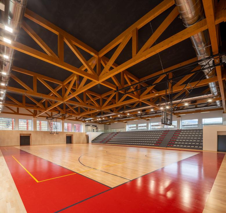 The project of the “New Sports Hall” has been carried out by demolishing the old school gym, which no longer fulfilled the required energy or quality needs, to make way for a modern and functional building. This new structure has been designed in accordance with the current CONI regulations for sports facilities, ensuring that it can host activities from various sports associations operating in the area. With a capacity of 400 seated places, the new sports hall will be equipped for sporting events across different disciplines.