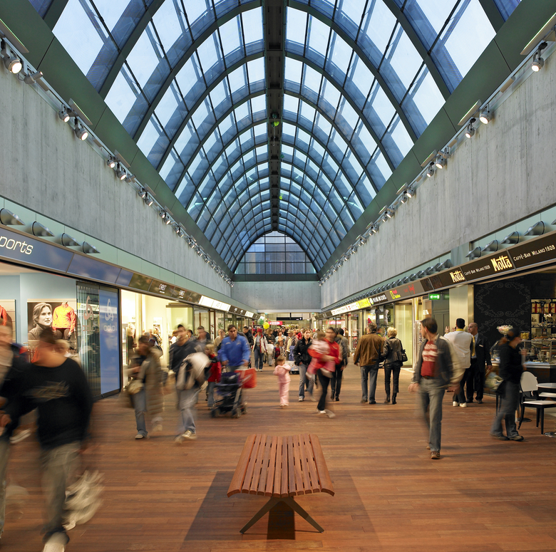 Neupositionierung des Einkaufszentrums Shoppi Tivoli: Neubau einer Ladenpassage zwischen den Centerteilen «Shoppi» und «Tivoli» als Brücke über die Kantonsstrasse