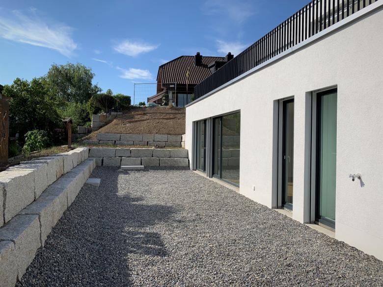 Die private Bauherrschaft hat, um ihre eigene Aussicht zu wahren, ein sehr tiefliegendes Gebäude verlangt. Entgegen aller Gewohnheiten, haben wir das 5.5 Zimmer EFH nach unten entwickelt.