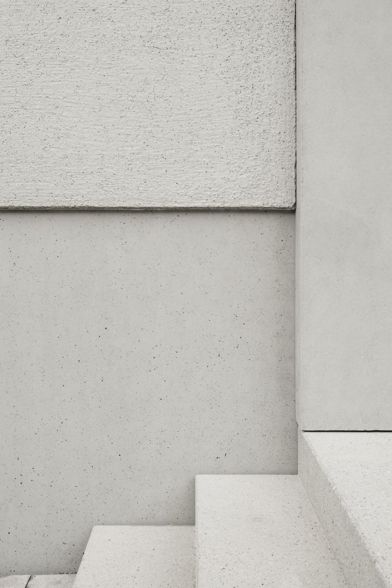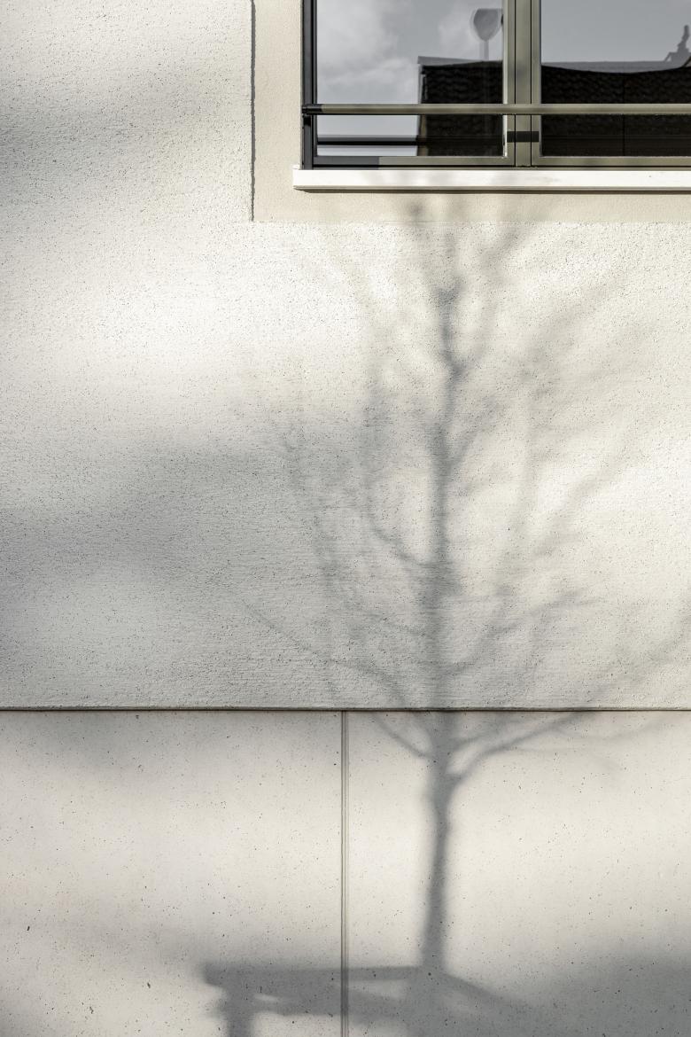 Die abgedrehte Setzung des Erweiterungsneubaus parallel zur Strasse schliesst die Baulücke in der Häuserzeile der Gatterstrasse typologisch und promenadenartig. Der Versatz im Grundriss zwischen den beiden Baukörpern dient der Belichtung der Fassaden und gliedert strassenseitige Vorplätze. Die Körnung der bestehenden Bauvolumen werden mit dieser Setzung fortlaufend ergänzt, neue Freiräume aufgespannt.