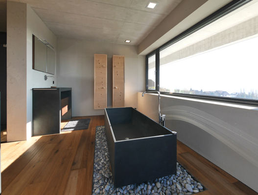 Mitwirkend bei allen Entscheidungen und mit viel gestalterischem Feingefühl des Auftraggebers wurde ein minimalistischer Monolith aus Sichtbeton auf ein neues Plateau gesetzt.