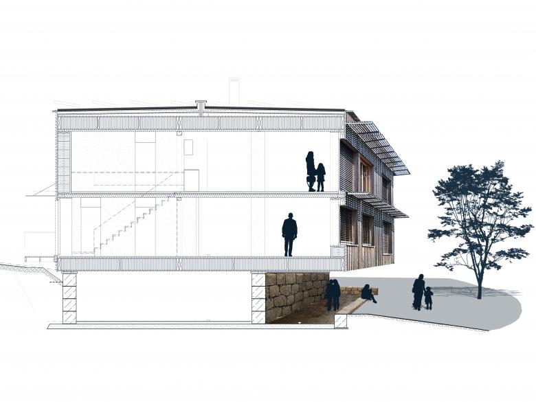 Aufgabe: Neubau eines autarken null Energie Holz-Stroh-Lehmhaus mit Carport in Villarepos