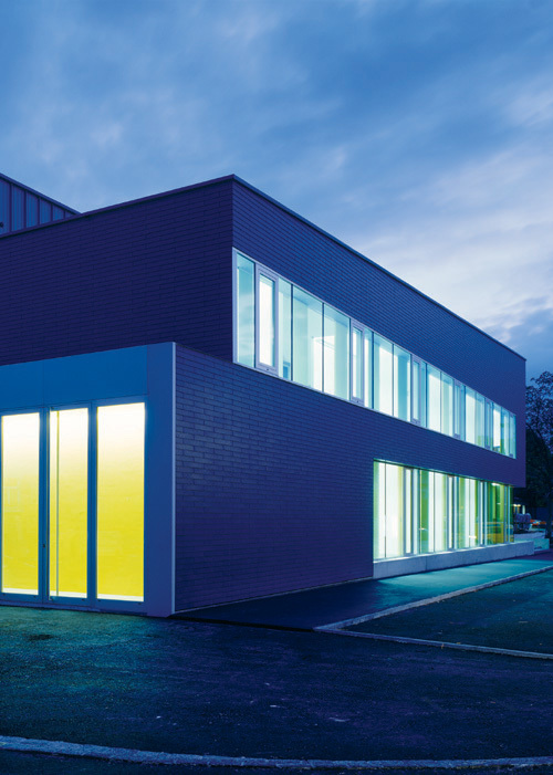 Die komplexe und im Grunde unvereinbare Nutzungsmischung von Werkhof, Polizeiposten und Jugendtreff in einem Haus wurde zum Generator der städtebaulichen Konzeption: