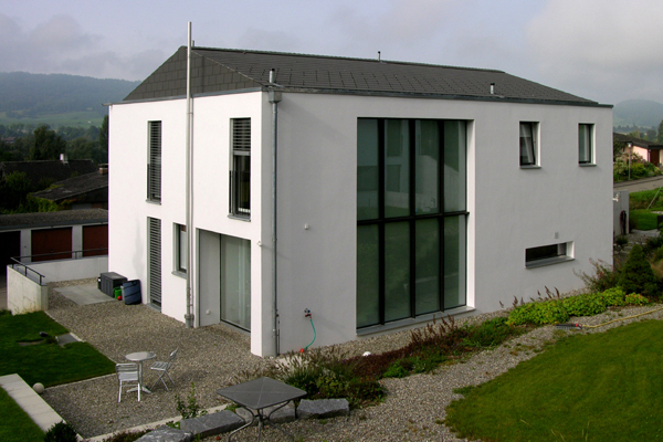 Zwei befreundete Familien haben in Stein am Rhein ein 2000m2 grosses Grundstück gekauft, um dort ihren Wohntraum zu verwirklichen. Zwei am Hang gebaute, von aussen scheinbar identische Häuser liessen doch zwei ganz individuelle, auf den jeweiligen Bauherrn zugeschnittene Wohnformen zu.