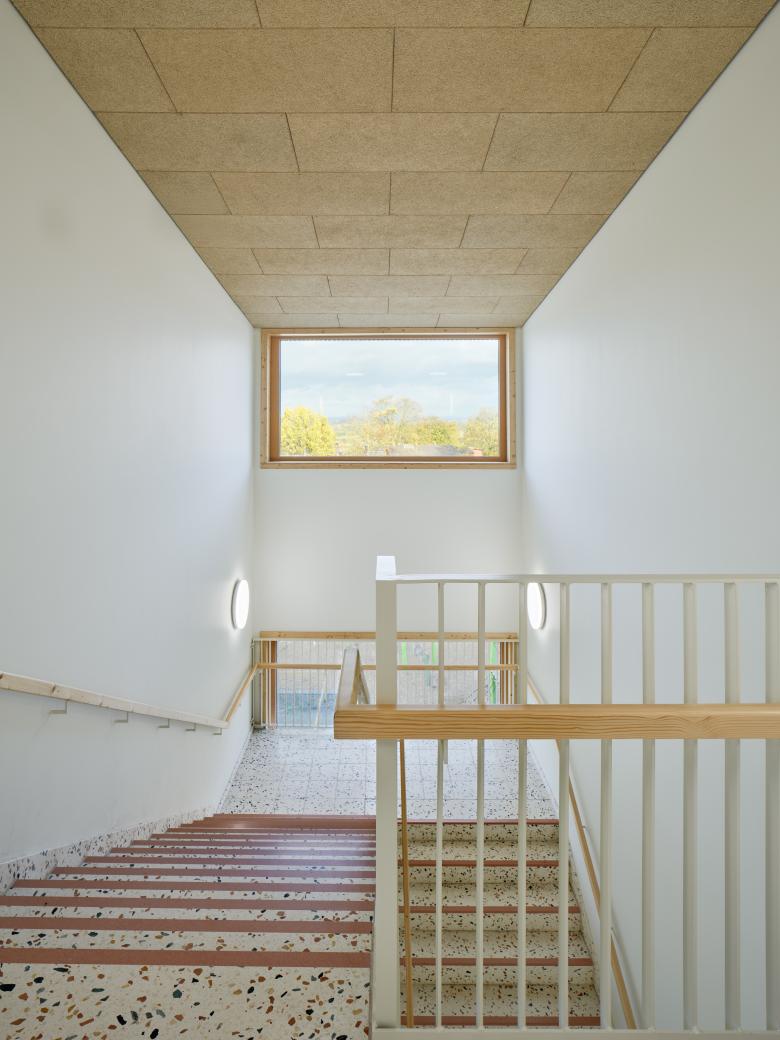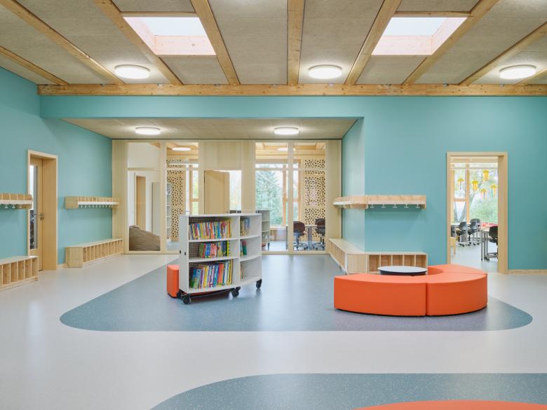 Die Umgestaltung der ehemaligen Hauptschule verwandelte dunkle Flure ohne Aufenthaltsqualität in helle, offene und flexibel nutzbare Räume. So entstanden vielseitige Lernbereiche, die moderne pädagogische Konzepte unterstützen. Die neue Schule bildet ein harmonisches Ensemble aus verschiedenen Bauzeitschichten, das durch die Erweiterung zu einer funktionalen und gestalterischen Einheit zusammengeführt wurde. Neben dem Ganztagsunterricht steht der Standort nun auch Vereinen offen und ist fest im Gemeindeleben verankert. Die Maßnahme wurde im vorgesehenen Zeit- und Kostenrahmen realisiert und stärkt damit nachhaltig die räumliche und soziale Infrastruktur der Gemeinde.