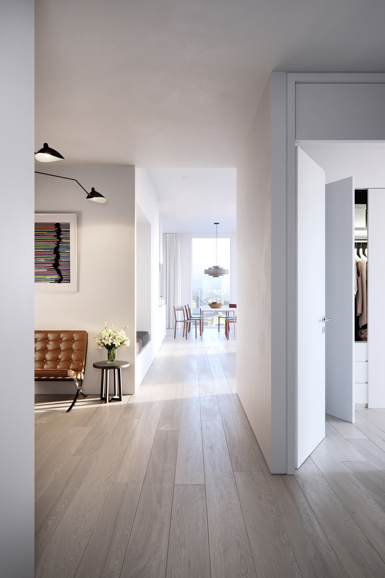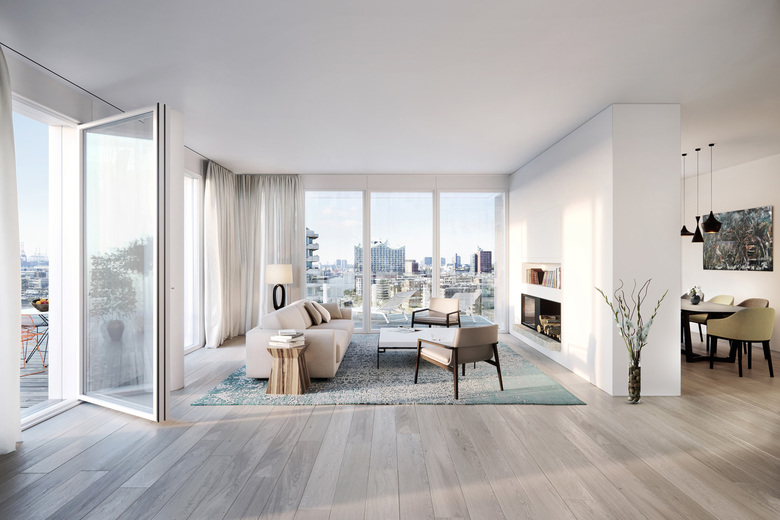 In addition to the building structure, Richard Meier & Partners has also designed significant interior details. These include open and spacious, light-flooded interiors with ceiling-height doors and floor-to-ceiling windows open to the city, the Elbe River, and the city port. Residents of these apartments will also enjoy access to a private gym situated on the 16th floor with panoramic views of Hamburg.