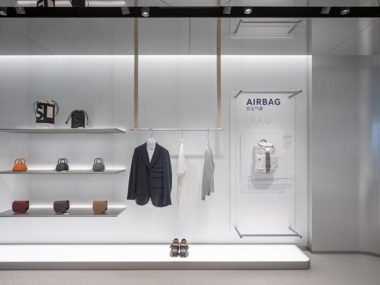 Clean and sleek materiality in white and silver ensures the products take centrestage, though the inventive inclusion of reused car components including seatbelts that double as clothing racks adds an engaging layer of thematic detail. The result is a retail space that expresses the minimalist purity of a research lab whilst retaining a sensory, human-centred guest experience – one that succinctly represents NIO’s ambition to root its innovative products in the foundations of an organic community.