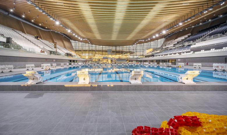 Das Wassersportzentrum zeichnet sich durch technische Innovationen und moderne bauliche Maßnahmen aus – darunter das 89 m lange Holzdach der Schwimmhalle sowie die 18 m breite Fußgängerbrücke, die den Neubau mit dem berühmten Stade de France verbindet. Die multifunktionale Schwimmhalle bietet ein 50-m-Becken sowie ein Sprungbecken. Während der Olympischen Spiele wurde die Sportstätte für Wasserball, Synchronschwimmen, Tauchen und während der Paralympics für Boccia genutzt.