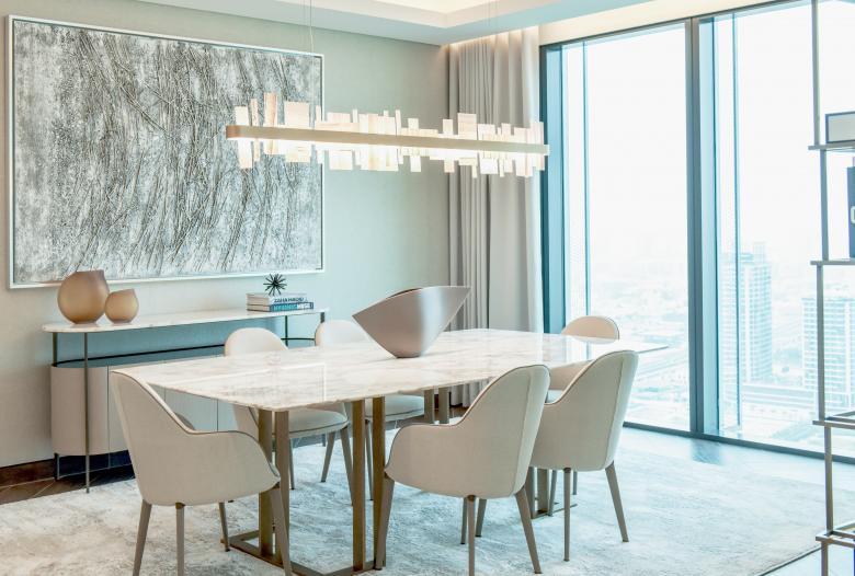 The One Za’abeel Show Apartment was conceived as an interior representation of elevated urban living within one of Dubai’s most prominent mixed-use developments. Commissioned to reflect the contemporary grandeur of the building, the project was designed to communicate a lifestyle narrative for prospective residents rather than respond to a specific end user.