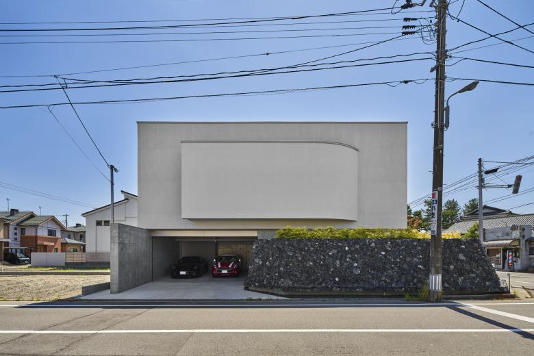 敷地は住宅のほか、神社、学校など様々な要素に囲まれている。周囲を行き交う人の視線や喧噪から距離を置く環境を作るとともに、大地や空を眺め、近づくことができる家を計画した。