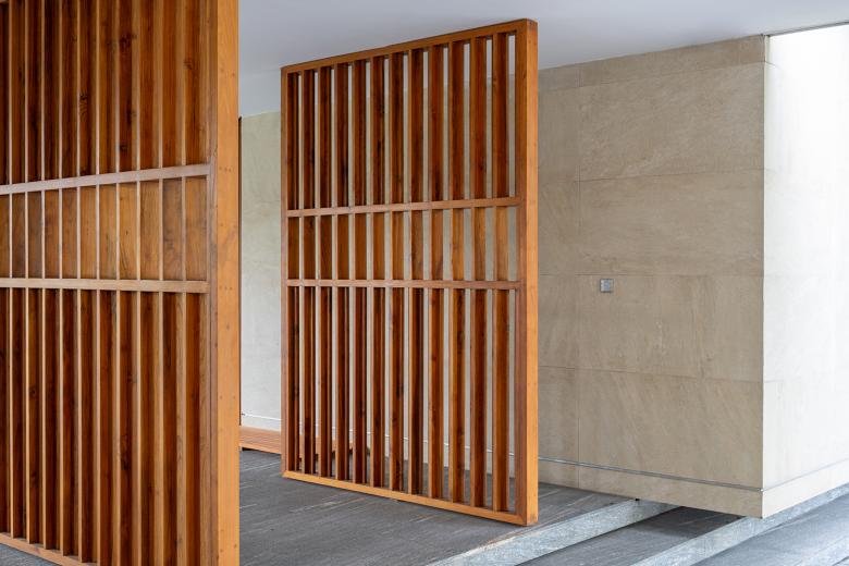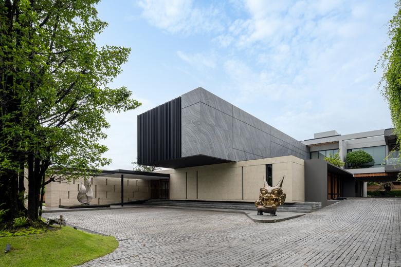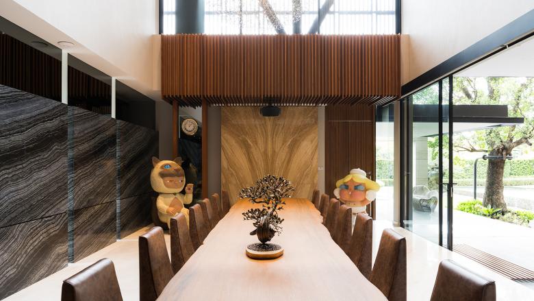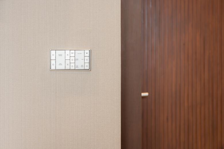 Das Ziel bestand darin, die Individualität des Bauherrn in seinen verschiedenen Rollen als Sammler, Ästhet und Gastgeber architektonisch umzusetzen, ohne dabei auf Zurückhaltung und Raumqualität zu verzichten. Der Grundriss des großzügigen Wohnhauses ist um eine zentrale Halle mit Galerie organisiert, von der aus zwei Flügel abzweigen: Einer beherbergt private Rückzugsräume, der andere Gemeinschaftsbereiche sowie Spa-, Fitness- und Poolanlagen. Die Gestaltung folgt dem Konzept des „Modern Tropical Living“: Großformatige Verglasungen öffnen die Räume zum Garten, organische Materialien wie Holz und Stein treffen auf Marmor, Metall und Licht. Der Wechsel zwischen offenen Sichtachsen und gezielt inszenierten Zonen – etwa in der Sammlungskammer oder am skulpturalen Treppenlauf – erzeugt ein Wohngefühl, das zugleich repräsentativ und intim wirkt. Zur Steuerung von Licht, Klima und Funktionen wurde ein KNX-System implementiert. Schalter und Taster der Serie LS 990 von JUNG wurden gezielt in unterschiedlichen Ausführungen eingesetzt: Edelstahl in hellen Bereichen und Dunkelaluminium im Kontrast zu dunkleren Raumkonzepten. Die klare Geometrie und die hochwertige Haptik dieser Serie fügen sich nahtlos in die fein austarierte Materialkomposition ein – als funktionales Detail mit gestalterischem Anspruch.
