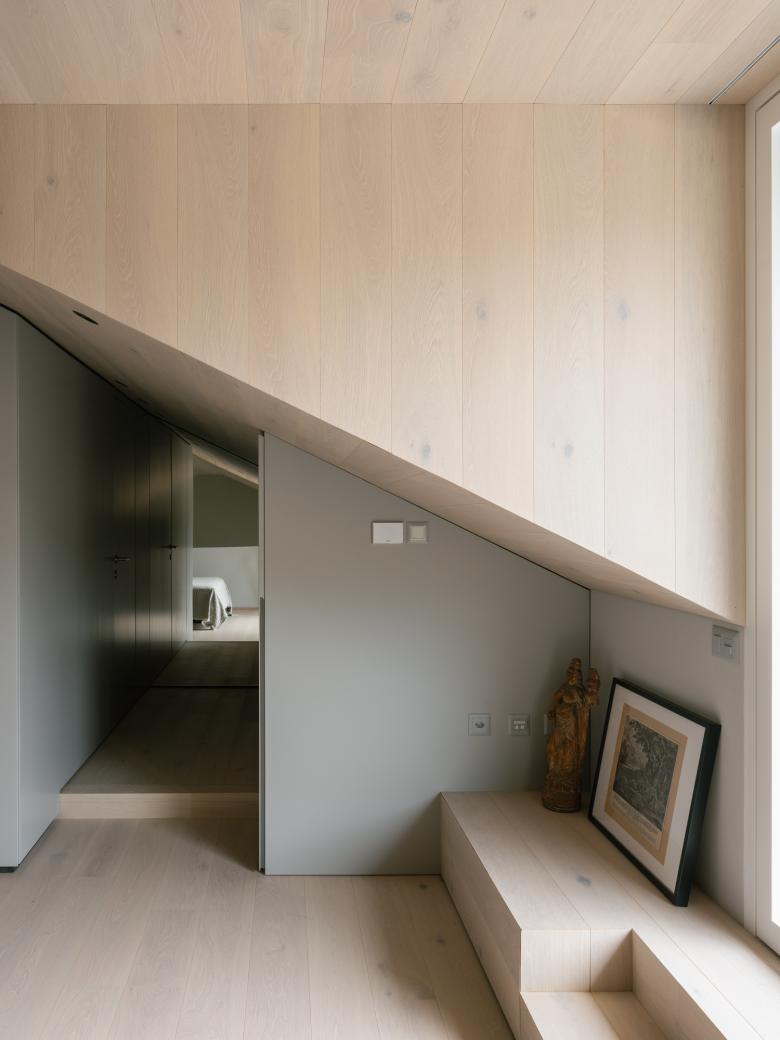 Auf einer Fläche von 2.400 Quadratmetern bietet der Palazzo nun 16 individuell gestaltete, moderne Wohnungen auf vier Etagen. Ein Freizeitbereich mit Aussenpool und Gartenküche sorgt für zusätzlichen Komfort. Die Innenräume des Palazzos verbinden natürliche Materialien mit einer modernen, harmonischen Ästhetik. Unsere Parkettböden aus der Villapark-Kollektion in Eiche Crema wurden aufgrund ihrer natürlichen Optik und langlebigen Qualität gewählt. Dank der B-Protect®-Oberflächenveredelung bleibt die natürliche, matte Optik des Holzes erhalten, während es zusätzlich UV-resistent und pflegeleicht ist. Das Besondere dabei: die Landhausdielen von Bauwerk Parkett wurden nicht nur klassisch am Boden verlegt, sondern zieren ebenfalls die hohe Decke und sorgen somit für ein aussergewöhnliches Raumerlebnis.