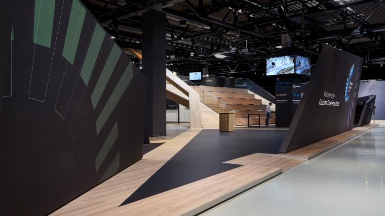 Die ganze innovative Vielfalt des japanischen Technologiekonzerns ist seit kurzem auf dem Panasonic Brand Campus in München zu bestaunen: Für das im Auftrag von und in Zusammenarbeit mit der Münchner Agentur Blackspace entstandene Experience Center hat Panoorama einen Inszenierungsraum für sieben verschiedene Produktwelten designt. Aktuelle Innovationen aus allen Divisionen von Panasonic Industry werden im Experience Center in Szene gesetzt, darunter Exponate und Use Cases aus den Technologiebereichen Mobilität, Retail, Haushalt und öffentlicher Raum – beispielsweise eine über das Internet der Dinge vernetzte Küche und ein smartes Preisauszeichnungssystem für den Einzelhandel. Auf 1600 Quadratmetern legt sich die Inszenierungsfläche wie ein Teppich in die Halle. Basierend auf der gestalterischen Grundidee einer architektonischen Faltung erheben sich triangulierte Flächen aus dem Boden und bilden auf zwei Ebenen klar konturierte Experience Areas zur Präsentation der diversen Panasonic-Produkte und -Technologien. Neben Architektur und Design der Inszenierungsräume entwarf Panoorama auch Möbel, Regale und Exponatträger. Nachdem das brandneue Experience Center während der Corona-Pandemie vor allem virtuell bespielt wurde zieht nun mehr und mehr Leben in den Brand Campus ein: Das Experience Center samt integrierter Tribüne wird eingerahmt von State-of-the-Art Meetingräumen und Laborarbeitsplätzen, in denen kontinuierlich an neuen Innovationen getüftelt wird.
