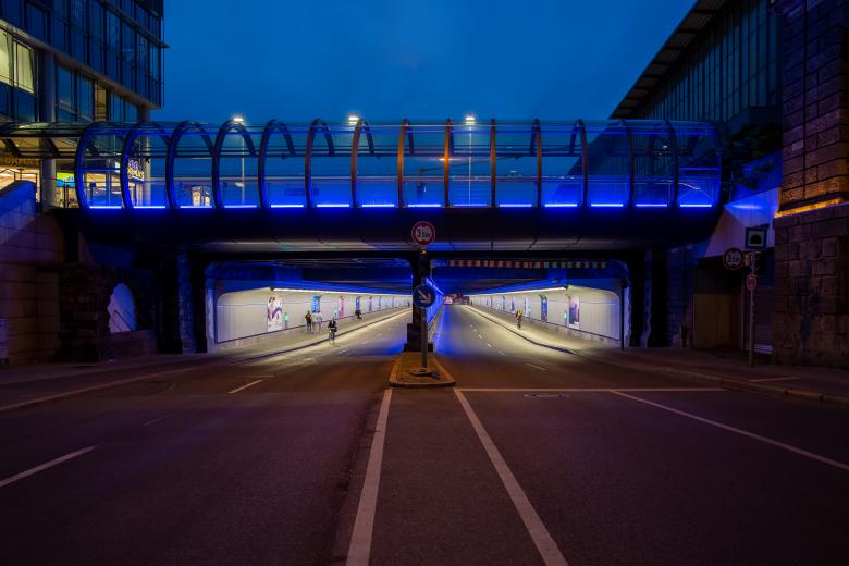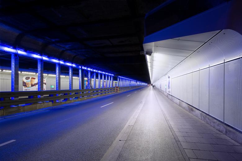 2016 wurden wir schließlich von der Landeshauptstadt München beauftragt, insbesondere durch eine Effektbeleuchtung die Atmosphäre in der Unterführung zu verbessern.
