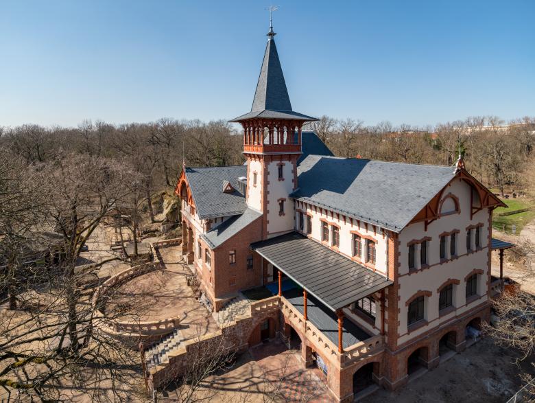 Das heute unter Denkmalschutz stehende Ausflugsziel liegt im beliebten Park- und Landschaftsschutzgebiet „Peißnitzinsel“ – eingebettet zwischen zwei Saaleflussarme – und damit im Hochwasserrisikogebiet. Für eine nachhaltige Nutzbarkeit sind deshalb nicht nur der Spagat zwischen Denkmalpflege und Brandschutz, sondern auch die Hochwasserfestigkeit und Flutungsfähigkeit besondere Herausforderungen an die Planung und Ausführung.