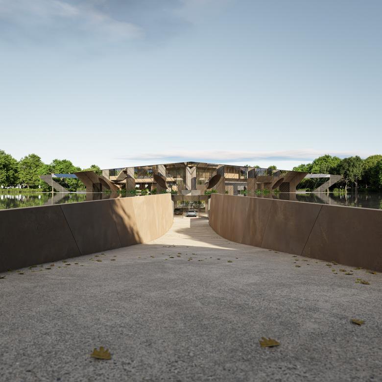 This creation explores and combines architecture with periscope structures as a gravity battery. By constructing below ground level, the Periscope House banishes the dreary basement ambiance, creating a gentle microclimate. The design features vertically moving mirrored walls at a perfect 45-degree angle, unveiling visual and spatial possibilities. Solar-powered servo engines raise the mirrors during the day, offering captivating views. This eco-conscious architectural creation merges artistry, sustainability, and metamorphosis, shaping a transformative world where physical and virtual realms converge.