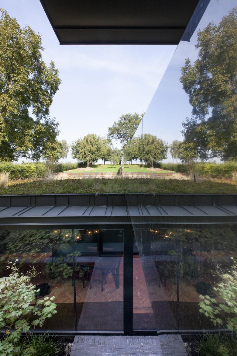 The headquarters of Egide Meertens Plus Architecten is a prime example of a successful extension through infill, carried out with respect for the surrounding environment. Following an earlier expansion of the existing practice, the office has now been complemented with an almost invisible reception pavilion—concealed due to its recessed placement between the architectural office and the Haspengouw landscape.