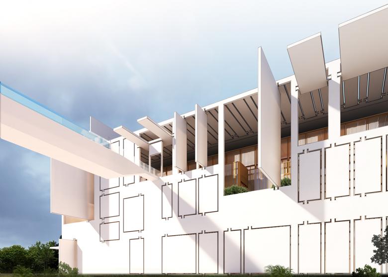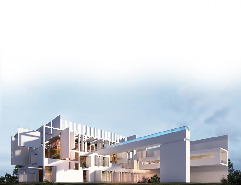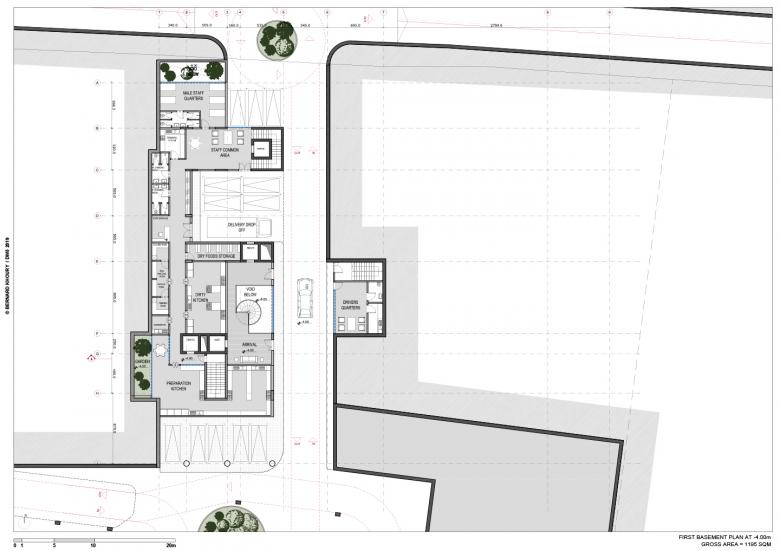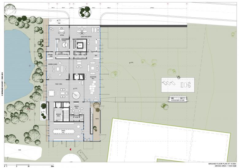 Given the extent of the program and scale of the project, a large built up area was required. Instead of merely stacking the three full floor plates required to satisfy the necessary areas up to the imposed fifteen-meter maximal height, the massing of the project was built around an outdoor promenade around the periphery of the interior spaces. This was made possible by setting back the upper edges, to create passageways and stairways around the building. This at once allows for each space to have an alternate exterior journey rather than just the conventional interior circulation, but also allows for extensions of terraces overlooking the garden and sea. Exceptional instances emerge from the mass of the residence giving rise to outdoor leisurely spaces such as a covered lounge and a single-lane pool shooting out towards the littoral edge.