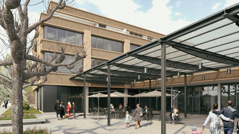 erstellte Rauracher-Zentrum, bildet auch nach über 40 Jahren noch das unbestrittene Zentrum von Riehen Süd. Damit das Gebäude zeitgemässen Standards von Nachhaltigkeit und Lebensqualität gerecht wird, wurde Rapp mit der Totalsanierung der Anlage beauftragt.