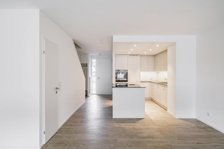 Die 4-Zimmer-Wohnungen wurden komplett saniert und mit zusätzlichen Gäste-WCs ausgestattet. Die Küchen der Maisonettewohnungen wurden offen gestaltet. Die engen Platzverhältnisse auf dem Areal erforderten eine anspruchsvolle Baustellenlogistik und das zeitlich versetzte Arbeiten an der Gebäudehülle der Bauten.