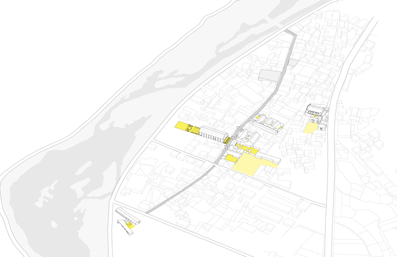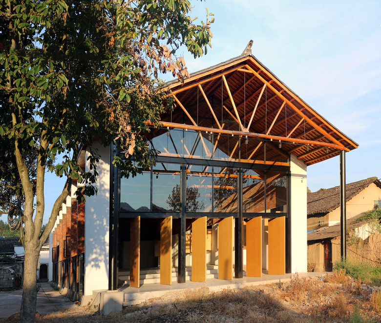 Starting from the reconstruction of Village-Hall as catalyst, the design kick-off a series of projects restoring and reactivating public buildings and open spaces along the historical street in Jieshou, Songyang, including Plaza of Village-Hall, Relic-site of Water-God Temple, Village Family Shrine, and Village School. While the new Village-Hall opens up an urban cross-section connecting the historical temple to the waterfront, the renovation of signature Courtyard Houses including Zhuo-Lu, Juyi-Tang and Minggaoshao-Fu, also opens up private courtyards to public streets and patios, linking village spaces into fabric, extending them to the surrounding nature of mountain and fields. Connecting points by points into lines and networks, the rural strategy of acupuncture by Wang Weijen Architecture intends to bring together architecture with community and social spaces, integrating production and culture tourism with village daily-life.