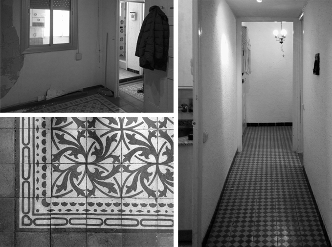 As for the materials, the intervention has recovered the original elements through a rereading that provides the house a new character. The plaster of the perimeter walls and the ceilings were removed leaving the brick walls and envigado sight, gaining breadth, depth and rythm. Hydraulic mosaics have been preserved remaking its limits where it has been necessary in order to adapt them to the new distribution. Existing doors, which once had been constructed from the union of shutters, have been pickled and reused again as a part of new doors. Finally the white color used generally contrasts with the bright colors of the hydraulic tiles from Escofet which acquire all the attention.