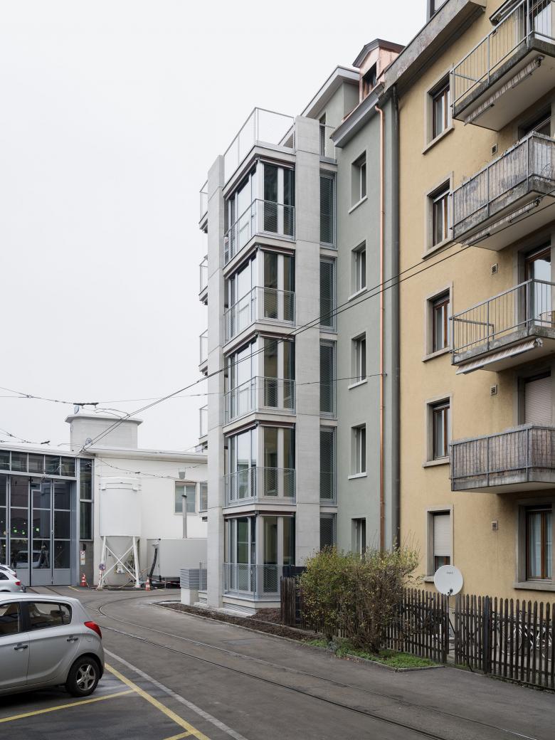 Das Mehrfamilienhaus in Zürich Wiedikon aus dem Jahr 1896 wurde mit dem Ziel bezahlbaren, städtischen Wohnraum zu erhalten, saniert und erweitert. Anspruchsvollen Voraussetzungen wie der denkmalgeschützten Bausubstanz, der geringen Anzahl Wohnungen und der Notwendigkeit, die Sanierungskosten niedrig zu halten, wurde mit sorgfältigen und minimalen Eingriffen begegnet.