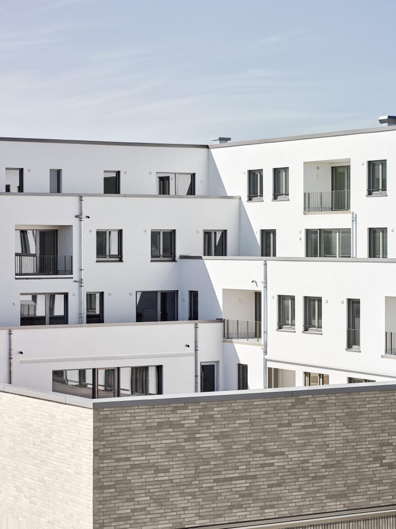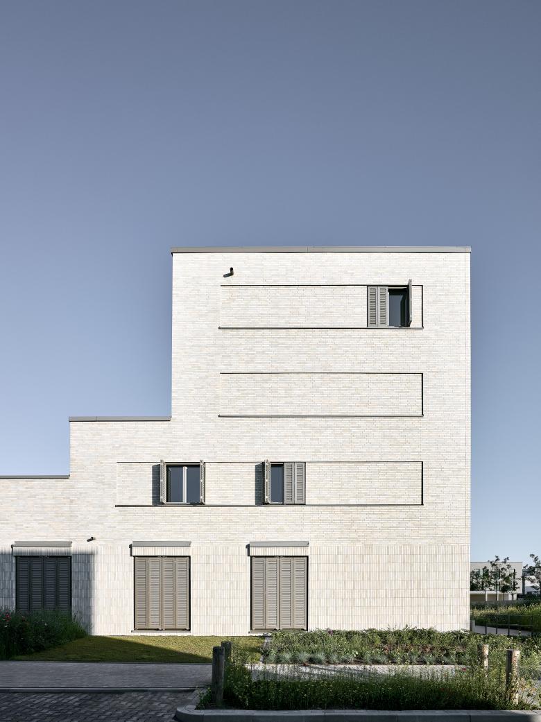 Die Hoffassade erhält eine Putzoberfläche und wird in einem gedeckten Weißton angelegt.