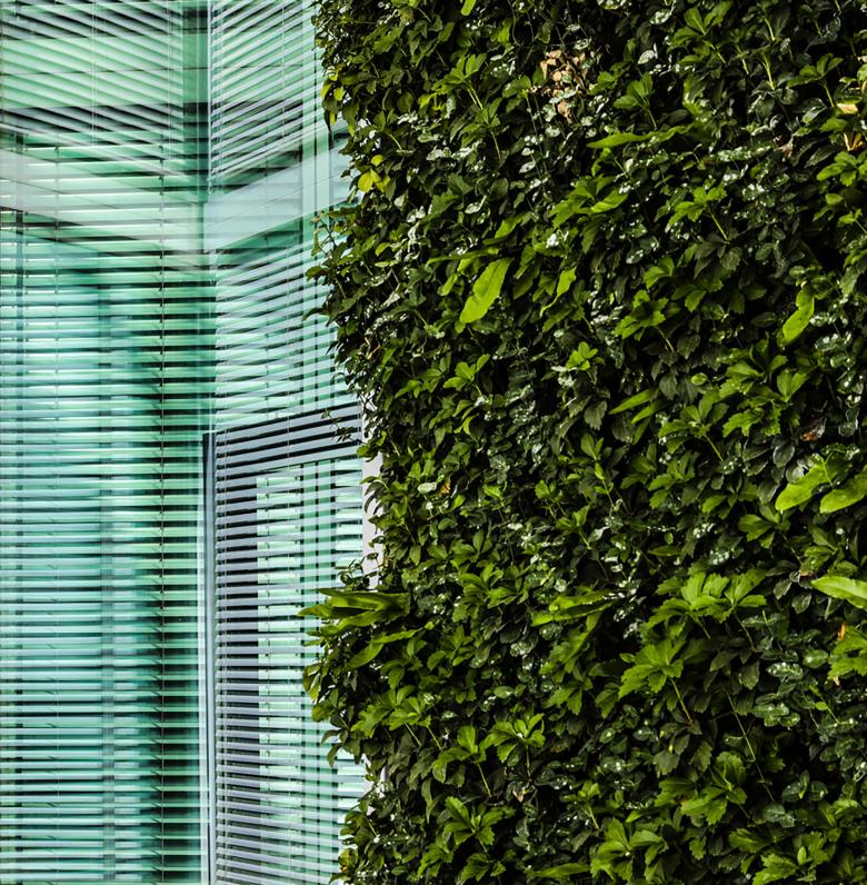 Was für ein Auftrag: Bauen Sie uns die Zukunft! Um ihre Digitalisierungsstrategie voranzutreiben, hat die RheinLand Versicherung Neuss eine Zukunftswerkstatt bei uns bestellt. Bekommen haben sie nach 9 Monaten Bauzeit: ein Gebäude im Gebäude. Eine Dreiecks-Konstruktion aus Stahl, Glas und Gras – denn eine der Außenwände ist begrünt. Der neue Pavillon im Innenhof der Konzernverwaltung greift in seiner transparenten Dreiecksgestalt die Architektur der im Jahre 1999 bezogenen RheinLand-Hauptverwaltung auf. Die Bauherrn haben viel Wert auf eine Dachbegrünung und auf begrünte Außenwände („vertikale Gärten“) gelegt. Die Zukunftswerkstatt ist das neue Herz des Unternehmens und fungiert als Think-Tank der RheinLand-Gruppe. Der markante Bau wird durch das Team für Digitalisierung und Innovation sowie für Workshops, Projektarbeit und Veranstaltungen genutzt werden. Mit der Errichtung der Zukunftswerkstatt treibt die RheinLand ihren Digitalisierungskurs weiter voran. Für den Think Tank gab es von der IHK den Innovationspreis Rheinland Genial.