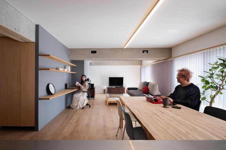 Having been able to purchase a larger room than in the city center, they sought the freedom to live a life that would be the foundation of their own lives. Since most of their work is done remotely via online, they spend most of their daily lives in this residence and commute to the city center only on weekends.