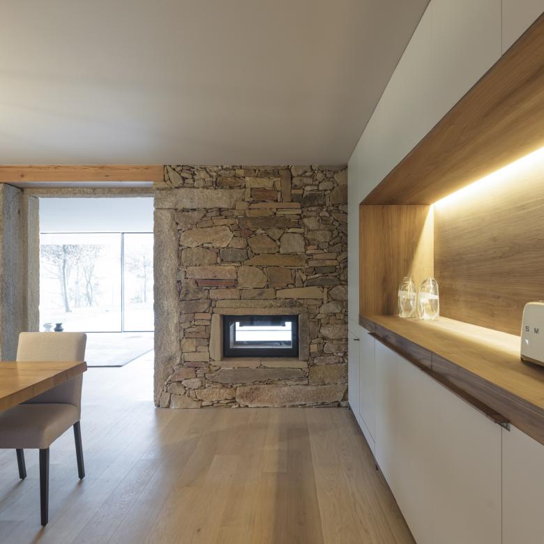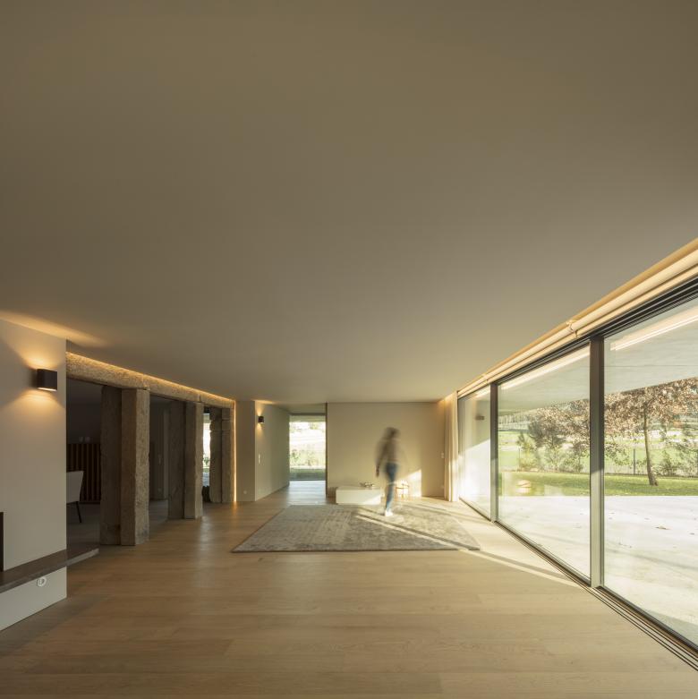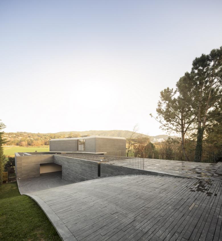 Just like the old house, the new one merges into the morphology of the land, doing without the urban frontage, encouraging dialogue with the beautiful farmland that stretches away on the side opposite the street.