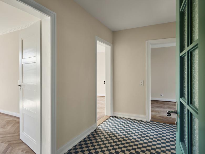 Aufgrund des Alters, des Zustandes und der Einbausituation der bestehenden Erschliessungsleitungen wurden diese neu erstellt. In diesem Zusammenhang sind auch die betroffenen Küchen, Bäder sowie die Korridore saniert worden. Die Sanierungsarbeiten im gemeinschaftlichen Bereich der Liegenschaft umfassten nebst Brandschutzmassnahmen (Brandabschnittsbildung, Rauch- und Wärmeabzug im Treppenhaus) auch Vorbereitungsarbeiten für den späteren Ausbau von Unter- und Dachgeschoss.