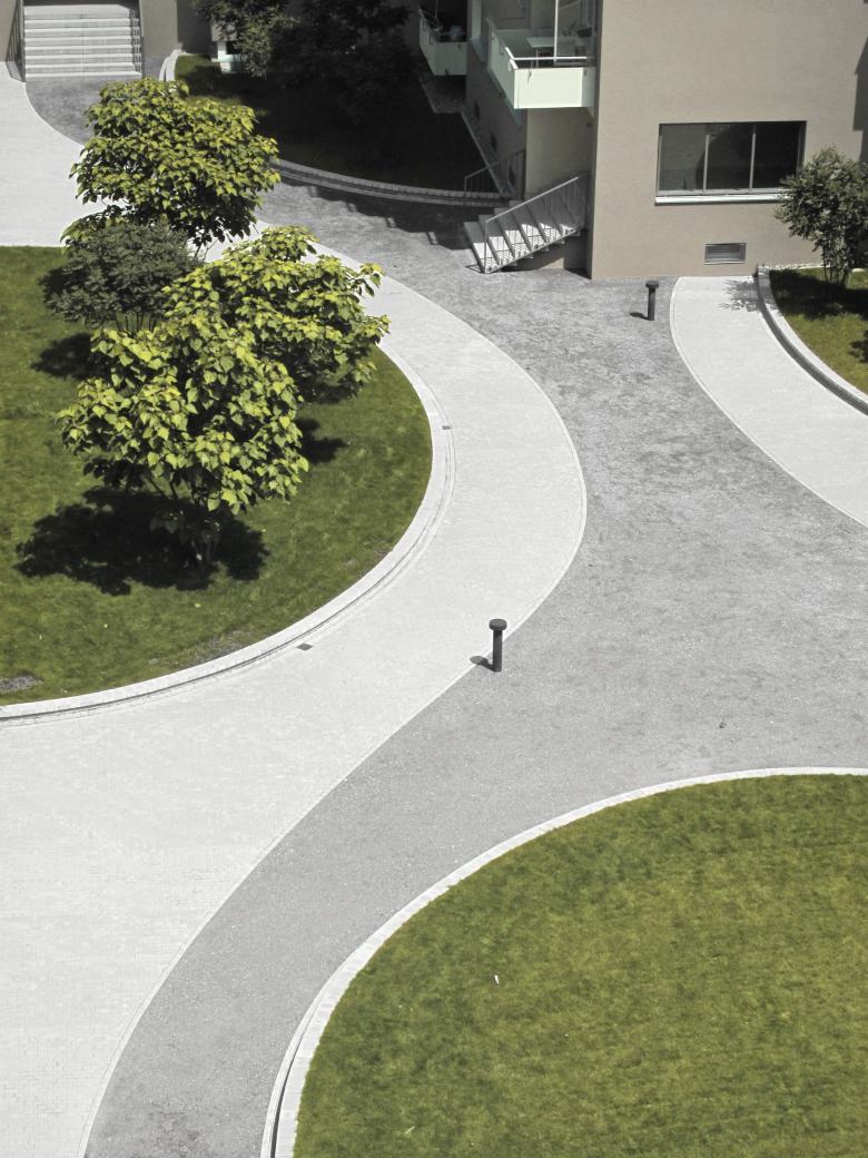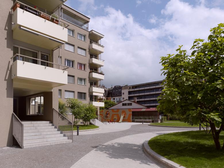 Die Siedlung aus dem Jahre 1975 stellt ein prägnantes städtebauliches Ensemble dar, das sich von der umliegenden Bebauung abhebt. Sie soll nur noch für einen Lebenszyklus von 30 bis 40 Jahren erneuert werden. Deshalb sind die Umbaumassnahmen auf ein Minimum beschränkt. Mit minimalen Mitteln wird eine möglichst grosse Wohnwertsteigerung erreicht, die Grundrissveränderungen beschränken sich auf die Erneuerung der Nasszellen. Der gesamte Umbau erfolgt im bewohnten Zustand.
