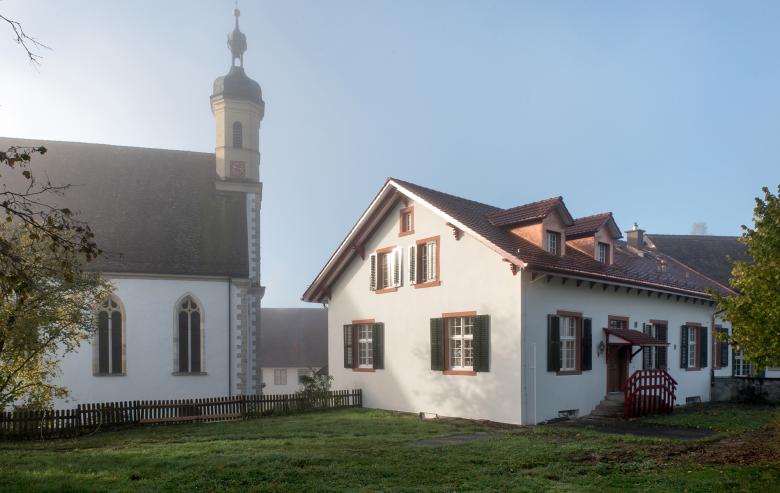 18. Jahrhunderts vis-à-vis der Stiftkirche gebaut, diente dem Kloster einst als Verwaltungsgebäude und später der christkatholischen Gemeinde als Pfarrhaus.