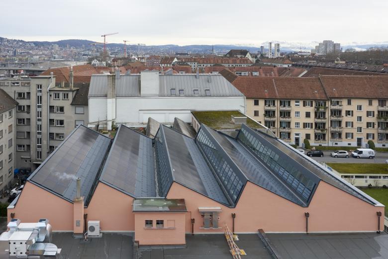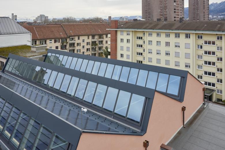 Weber Hofer Partner Architekten haben in Zürich die oberste Etage eines ehemaligen Industriegebäudes aus den 1920er-Jahren, die ihnen als Grossraumbüro dient, im Auftrag des Bauherrn Dr. Thomas Raible aus Rapperswil technisch saniert und nach ihren eigenen Ansprüchen neu ausgebaut. Eine der wichtigsten Massnahmen dabei war die Ertüchtigung des Dachs, das nach einem Brand in den 1960er-Jahren in Form eines Sheddachs wiederaufgebaut wurde. Die bis dahin unisolierte Konstruktion mit einfachen Drahtgläsern war nicht nur energetisch, sondern auch für das Raumklima des Büros im Sommer und Winter problematisch.