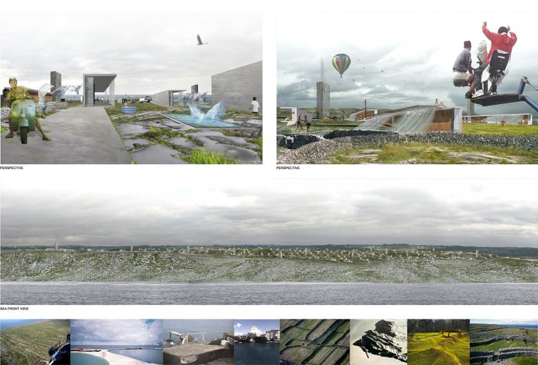 There is a time for vacation, time away from the normality and the routine of the ordinary. The proposed vacation community was designed as an exceptional destination, a place where extraordinary situations are more than probable. A particular sense of place is created around uncommon conditions. Our proposal dwells on experiencing and provoking pleasure through the unexpected episodes that can result from the bold and daring arrangements we provided on the site. Our reflection starts with the recognition and manipulation of selected features and characteristics that define the existing conditions of the site. These include the morphology of the site’s topography, the existing traces of property lines and the remaining boundary walls, the various types of soil and terrain, the existing vegetation, road network and passages, as well as the relationship with the distant coastal line and its abrupt edge.