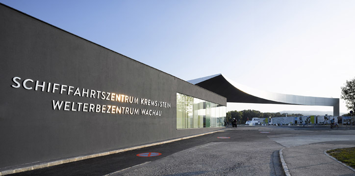 The new UNESCO Marine and World Heritage Centre in Krems (Austria) is located in the small town of Krems right at the river Danube’s waterfront. In this area the Danube meanders through the hilly landscape of the Wachau region in Lower Austria. With its vineyards, gardens, picturesque villages and old forests on the riversides, the region became a major destination for tourists, cruising the Danube. In 2004 the region was listed by UNESCO as a World Heritage Site.