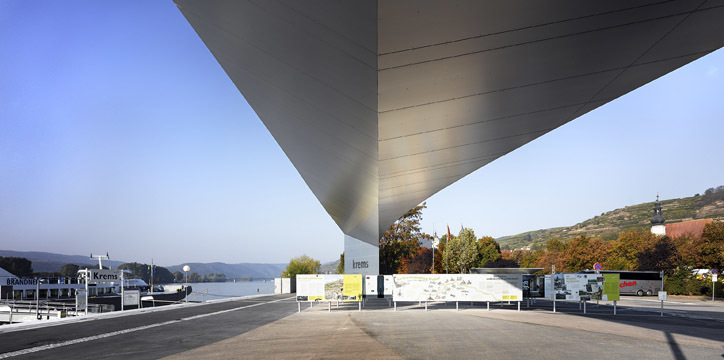 With a spectacular roof spanning over 80 meters the architects intended to outline a gate framing the activities of the visitors embarking and debarking. The structure contains an exhibition area, a restaurant, a tourist information center and a ticket office for the Danube shipping line. All these functions are formally unified under one roof. The project received the “Best Architects Award” in 2014.