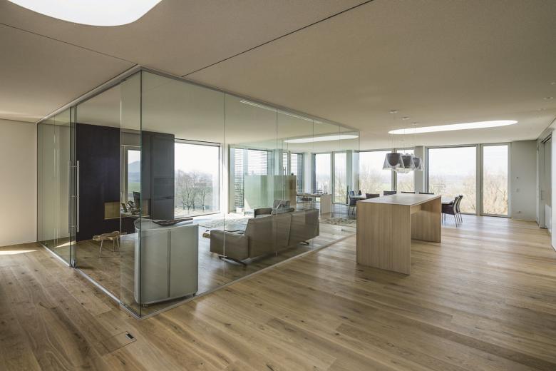 Im Norden docken zwei hohe Produktionsgeschosse an den Büroturm an. Der südliche Sektor mit Geschäften ist eingeschossig, teilweise mit Zwischenebenen gestaltet. Die Halle im Zentrum des Büroturms bildet das repräsentative Entrée für die ansässigen Firmen. Um der Nutzerschaft Optionen für künftiges Wachstum und Umstrukturierungen zu gewährleisten, sind die stützenlosen Stockwerkebenen im Verwaltungsbau funktional offengehalten. Dadurch wirkt die Struktur wie eine flexible Raummaschine.