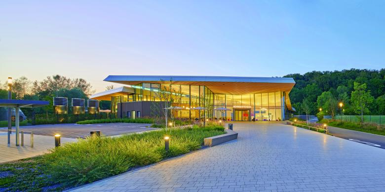 Die hier eingesetzten Keramikfliesen verfügen über die von Agrob Buchtal werkseitig aufgebrachte Veredelung „Hytect“, die durch die Dauerhaftigkeit und hohe Qualität der Materialien eine lange Nutzungsdauer des Gebäudes ermöglicht. Hytect-Keramik setzt im Zusammenspiel mit Licht und Sauerstoff auf natürliche Weise aktiven Sauerstoff frei, der direkt auf der Oberfläche und ganz ohne Chemie das Wachstum von Schimmel, Viren und Bakterien hemmt. So minimiert sich nicht nur der Reinigungsaufwand, es werden zudem Luftschadstoffe und störende Gerüche abgebaut. Fit für die Zukunft ist das Schwaketenbad aber auch durch das Zusammenspiel zwischen den zeitlos natürlichen Materialien und Oberflächen und der umgebenden Naturlandschaft. Auf diese Weise und durch die Langlebigkeit der Keramik wird die Badelandschaft auch in vielen Jahren noch in jeder Hinsicht ansehnlich sein.