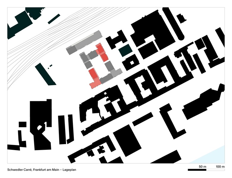 Auf einer ehemaligen Brachfläche entlang der Ferdinand-Happ-Straße im Frankfurter Ostend wird bis 2017 ein neues Wohnquartier entstehen. Die Neubebauung basiert auf der Gesamtplanung einer Arbeitsgemeinschaft dreier Architekturbüros. Auf der Grundlage eines übergreifenden städtebaulichen Konzepts zeichnen diese jeweils für einzelne Parzellen verantwortlich. Stefan Forster Architekten realisieren in diesem Kontext insgesamt vier Wohnhäuser mit 124 Wohneinheiten – jeweils zu Zweiergruppen an der Südwest- und Nordostecke gruppiert. Die Architektur der zumeist 7-geschossigen Gebäude mit zusätzlichem Staffelgeschoss zeichnet sich durch einen differenzierten Fassadenaufbau und den Wechsel von rötlichem und beigem Klinker aus. Mit markant geschwungenen, profilierten Balkonen und Brüstungsbändern bilden die prominent an der Südwestecke platzierten Gebäude die repräsentative Eingangssituation des neuen Quartiers.