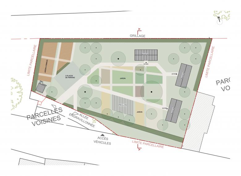 Das von der SNCF temporär zur Verfügung gestellte Grundstück liegt in fußläufiger Nähe zu bestehender sozialer Infrastruktur. In enger Zusammenarbeit mit dem Team von Fabrik à Yoops wurde ein räumliches Konzept entwickelt, das private Wohnbereiche mit offenen gemeinschaftlichen Räumen verbindet.