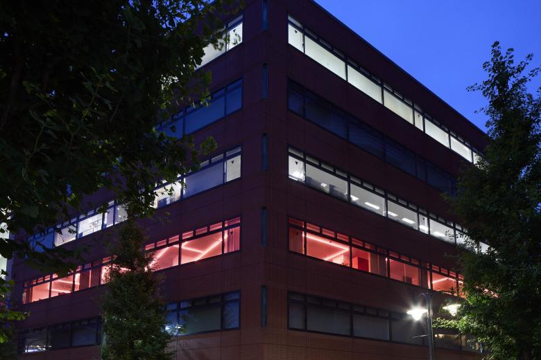 照明設計は光で人と人、アイディアとアイディアを繋げる設計としている。時間帯によって光の色を制御してより自然に近い明かりとなっているが、勤務時間ではない時間になれば青や赤などの違う色の光にすることも可能である。